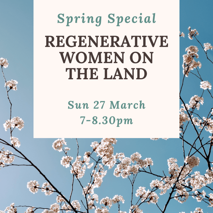 Regenerative Women on the Land are gathering for a Spring Equinox Special on Sunday 27th March from 7-8.30pm. Join us for a grounding session to reconnect with the land as it awakens, build community, and to refill our energy reserves in preparation for spring. And in celebration of Mother’s Day we’ll be showing gratitude to Mama Earth for all her gifts.