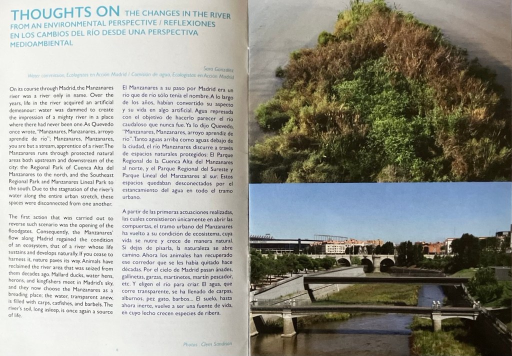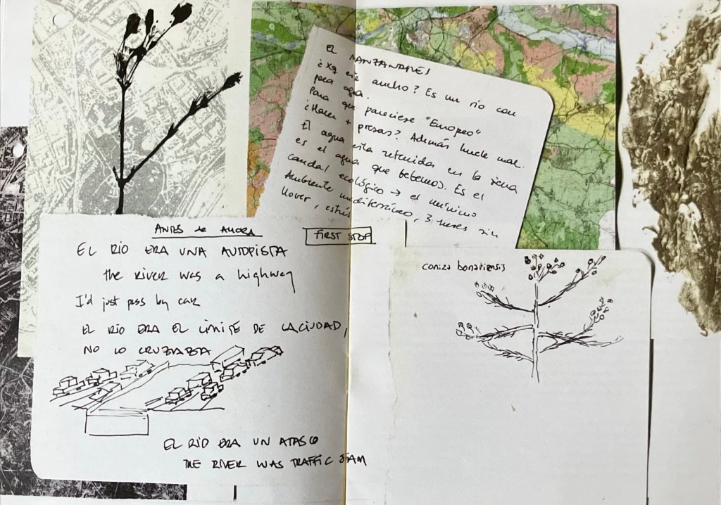 At the closing event people gathered for a meal at Huerta Matadero to share research findings and explore actions that can be taken for the future of the soil and river ecosystem in Madrid. We created a dual language zine in Spanish and English with a collection of the work created during the residency, including conversations with scientists and urban planners from Madrid.